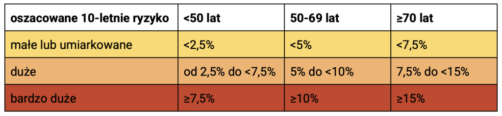 10-letnie ryzyko zdarzeń sercowo-naczyniowych: